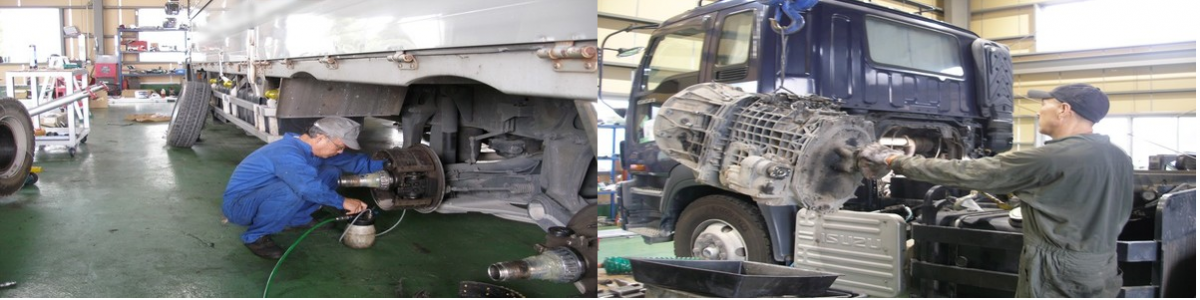 弊社は大型ダンプ・大型トラックなどのディーゼル車を専門に車検整備・一般整備・鈑金・塗装を行う認証自動車整備工場です。